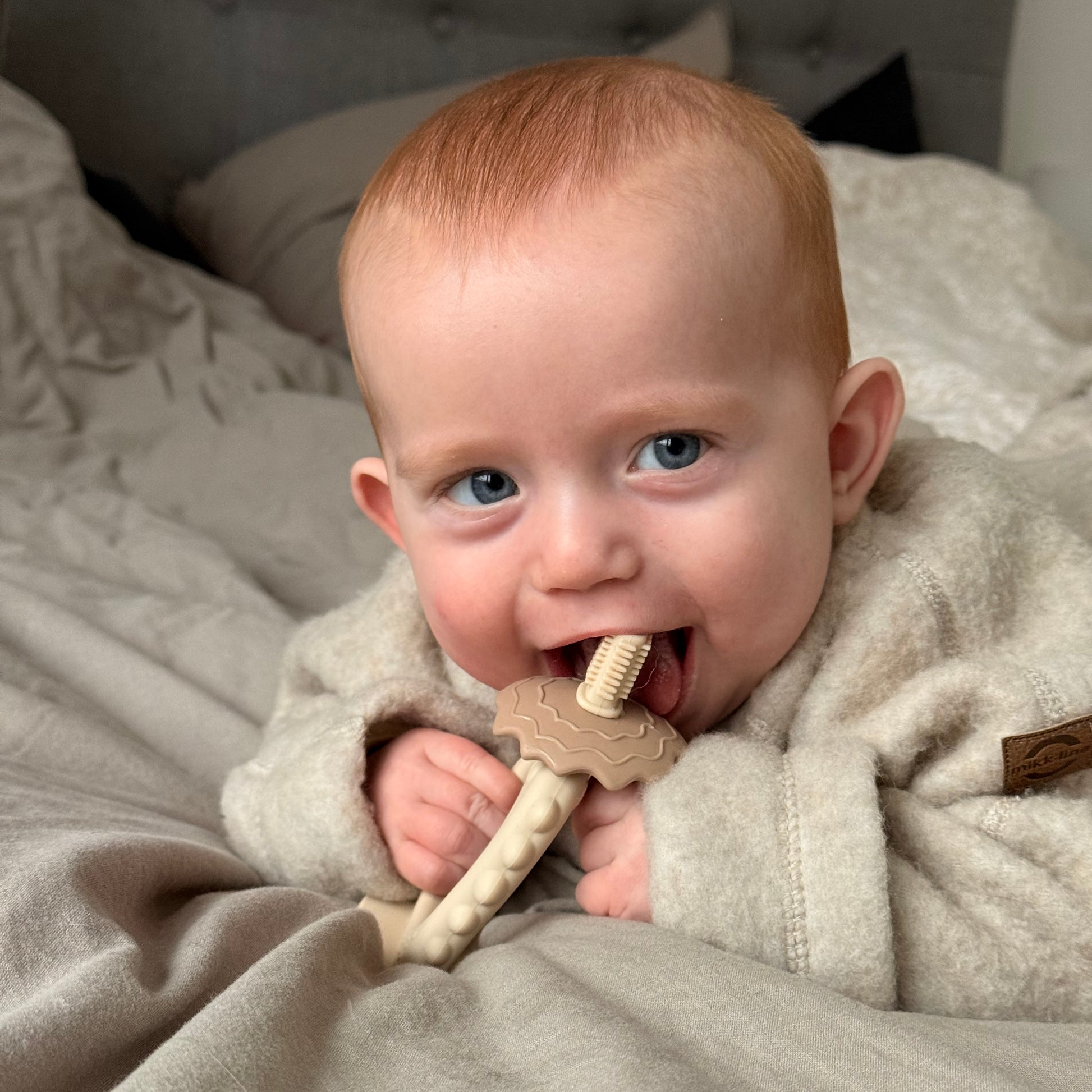 Med sin kombination af bidering og tandmassage fremmer den ikke alene tandkødets sundhed, men giver også en sensorisk oplevelse, der er med til at stimulerer dit barns sanseudvikling. Den er nem at gribe for små hænder og har en struktur, som både beroliger og opfordrer til nysgerrighed.