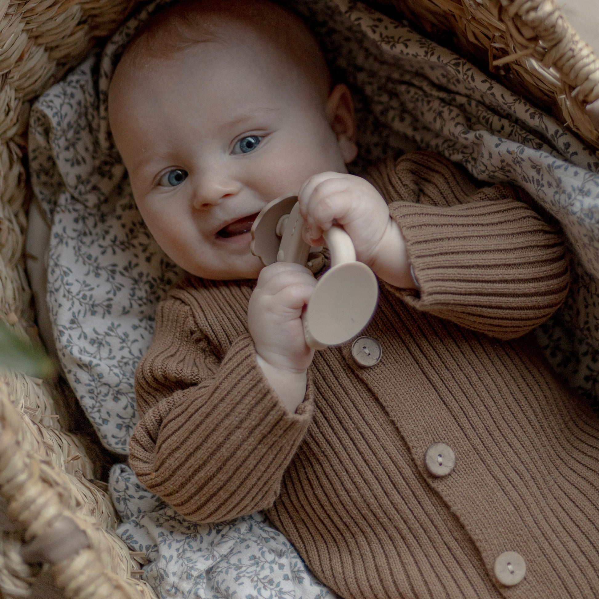 Blød og ergonomisk 2-i-1 silikone bidering med tandmassage – lindrer ømme gummer og stimulerer sanserne.