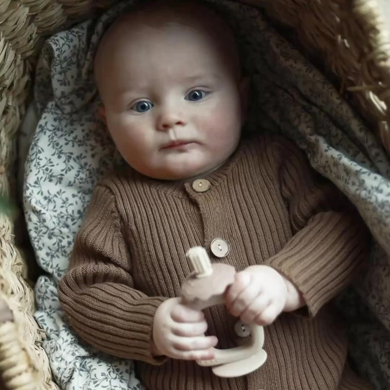 Gør tandfrembruddet lettere for dit barn med vores 2-i-1 Silikone Bidering med Tandmassage – designet til at lindre ømme gummer og give små hænder et sikkert greb.