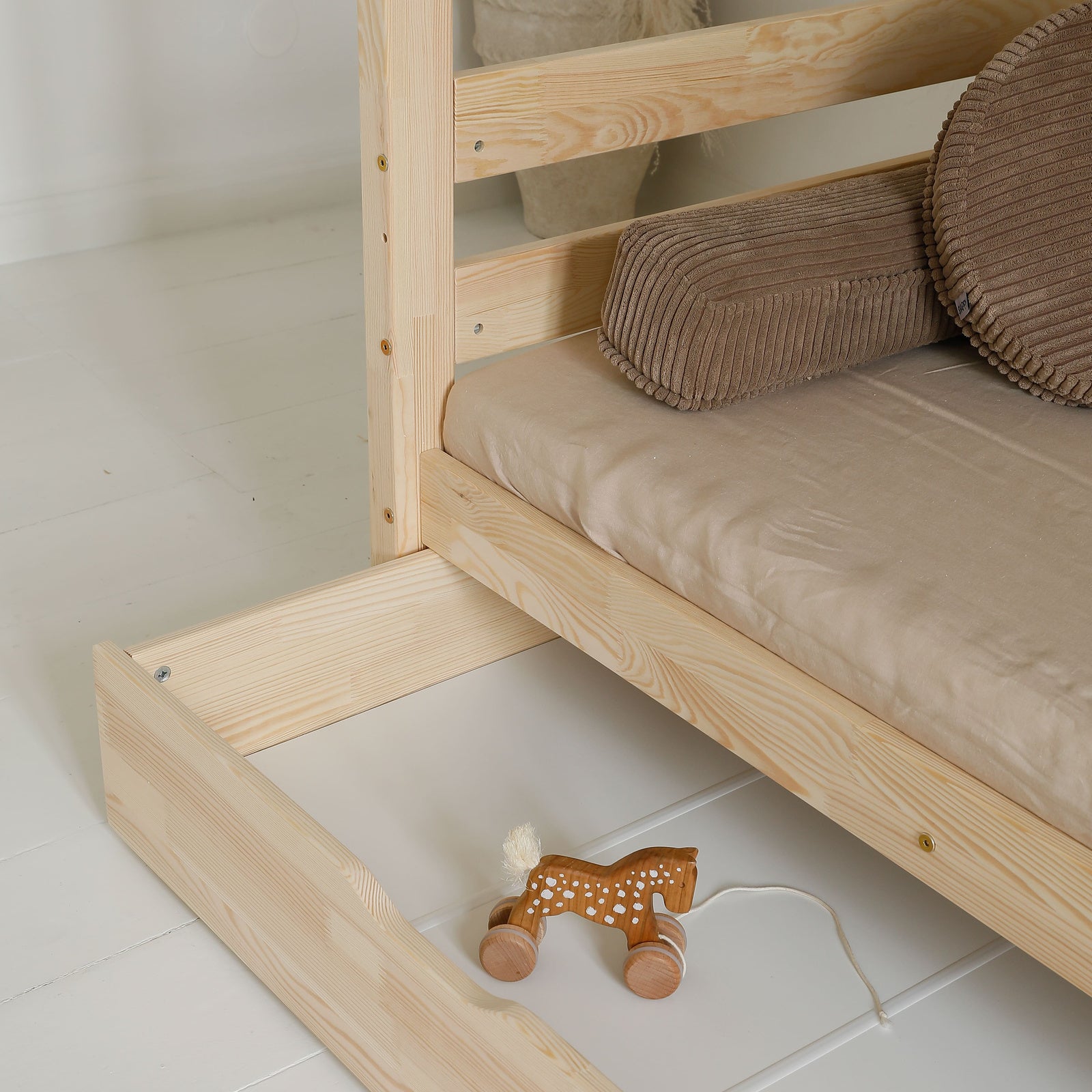 Praktisk skuffe under sengen - perfekt til børneværelset