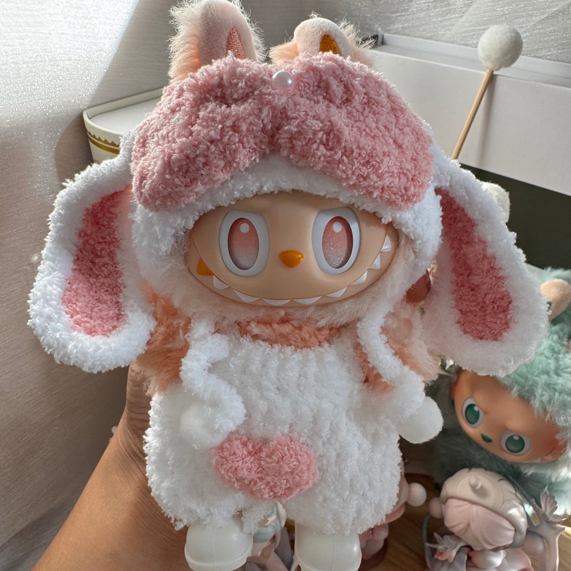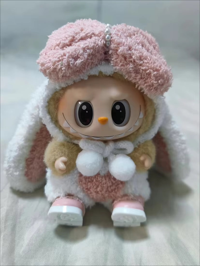 Det bløde kanin-kostume til Labubu er mere end bare et klædningsstykke; det er en portal til en verden af charme og eventyr. Det forvandler din Labubu-figur med sin uimodståelige kanin-stil, der kombinerer de fineste rosa og hvide farvenuancer i et overvældende design. Plys-materialet er fremragende til både leg og udstilling og giver en uovertruffen blødhed, som du vil sætte pris på dag efter dag.