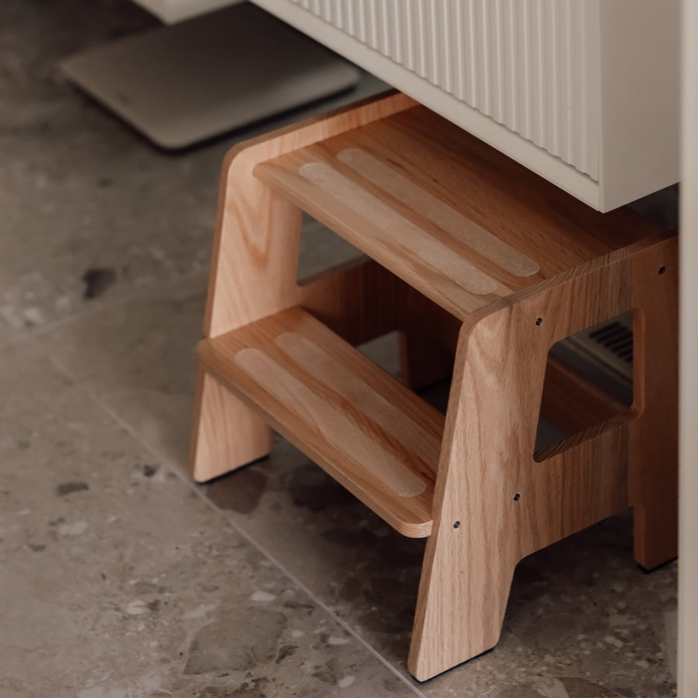 En funktionel og æstetisk skammel, der gør hverdagen lettere for både børn og voksne – og som samtidig er et smukt møbel i hjemmet.