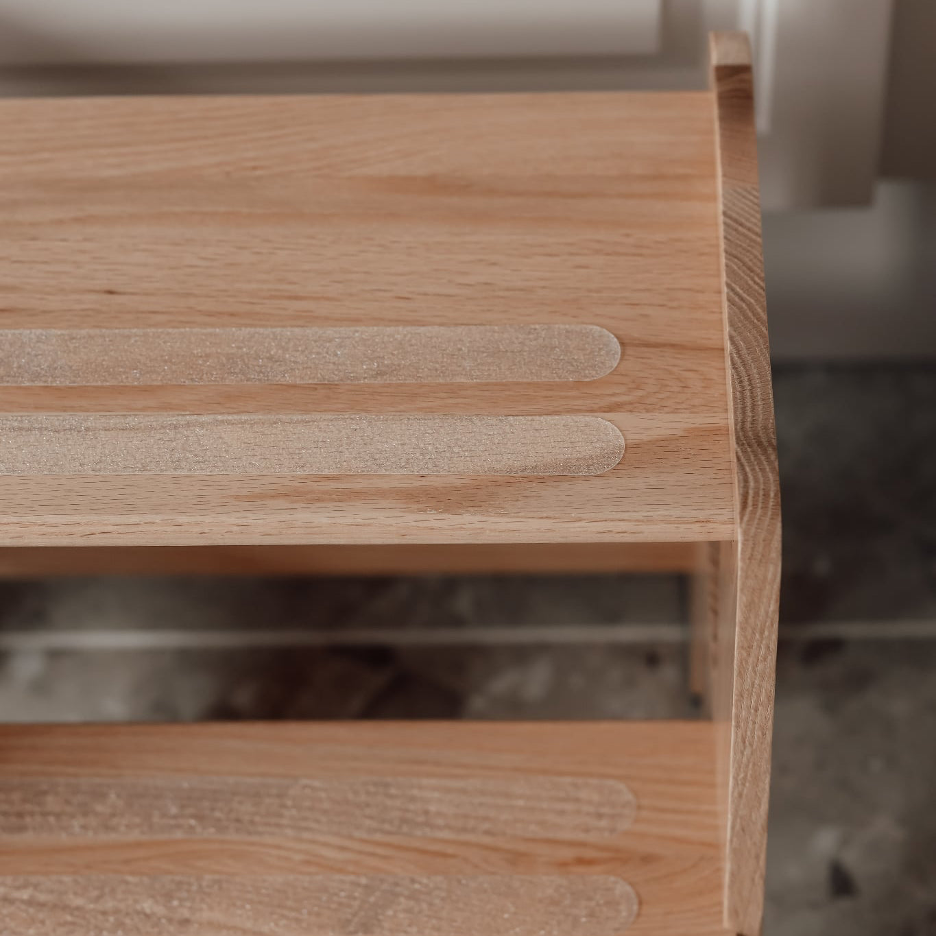 Vores børneskammel i egetræ er designet med stabilitet som en topprioritet. Den massive konstruktion og de afrundede kanter sikrer, at dit barn har et sikkert fodfæste og reducerer risikoen for uheld under brug.