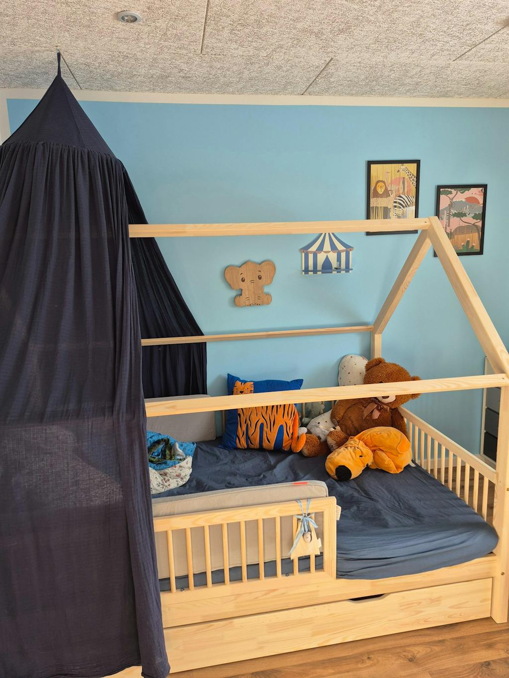 Perfekt til de mindste børn. Den lave højde gør det trygt og nemt for dit barn at kravle ind og ud af sengen selv