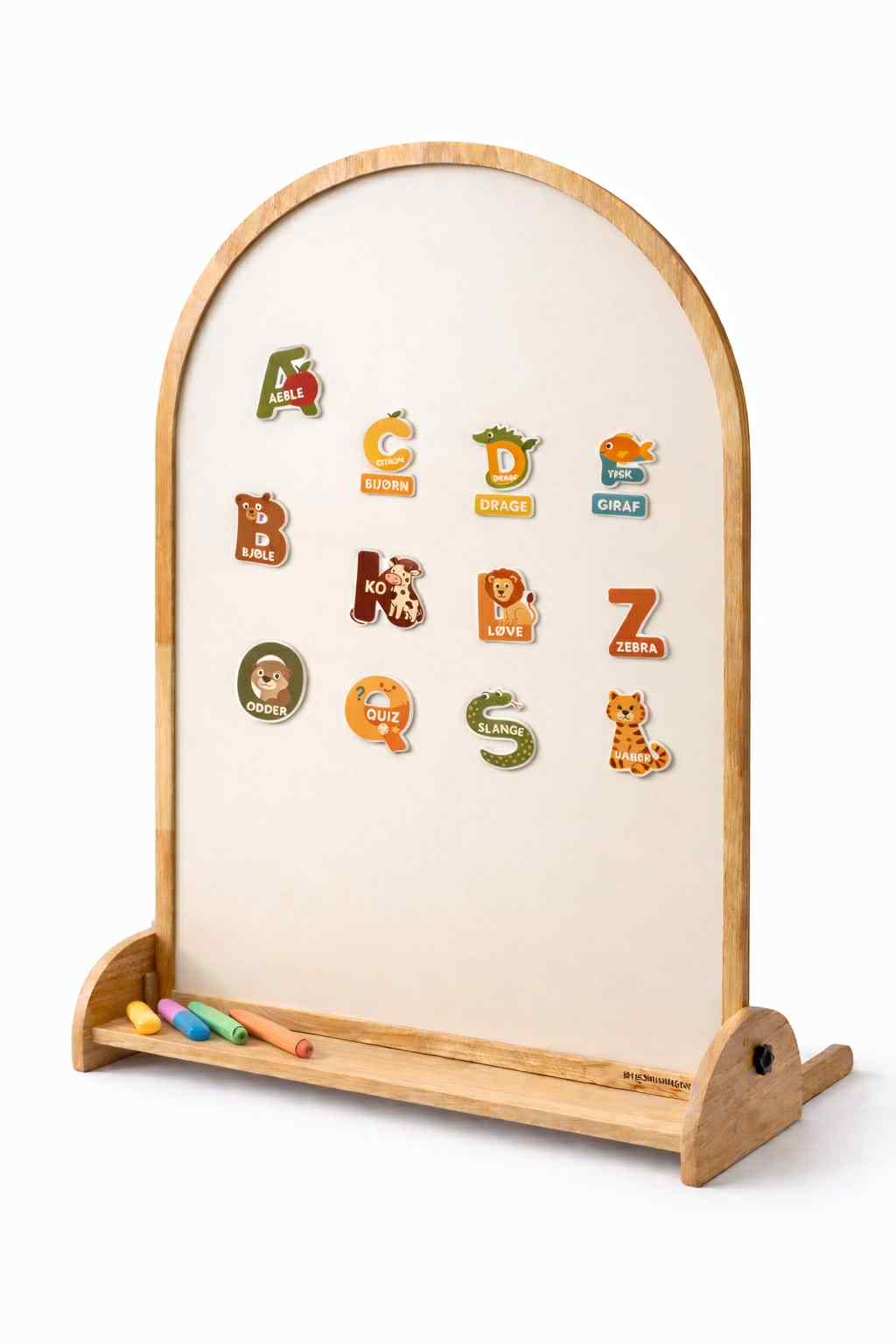 Holder til magnettavlen gør tavlen fritstående og nem at flytte rundt i hjemmet – helt uden vægophæng. Holderen er fremstillet i smukt træ og giver en stabil base, så barnet trygt kan tegne, lege og udfolde sin kreativitet i børnehøjde.
