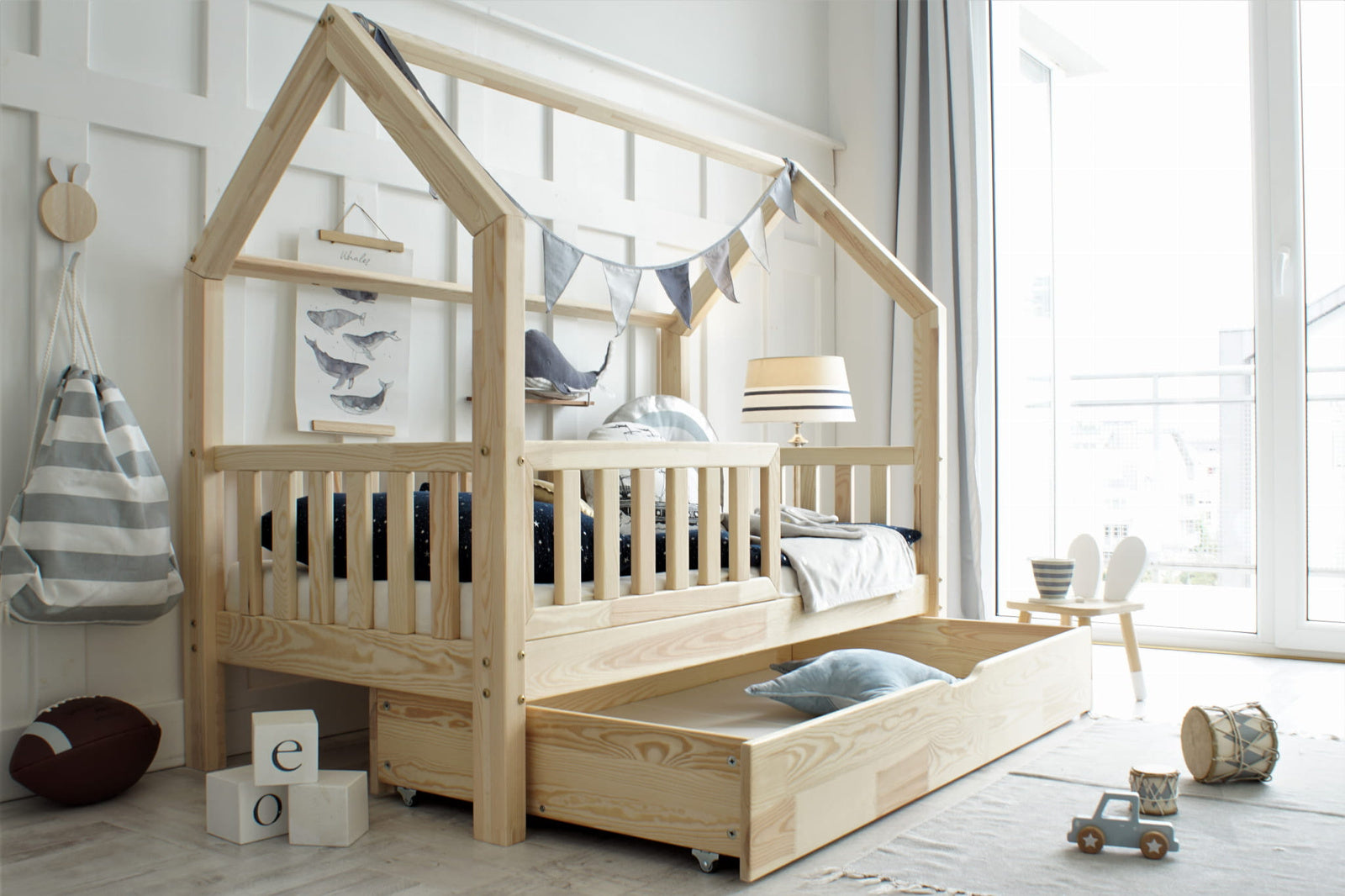 Med sit skandinaviske design, der fremhæver enkelhed og funktionalitet, integrerer denne husseng sømløst ind i ethvert moderne børneværelse. Lavet af robust og omhyggeligt slebet fyrretræ, sikrer Bianco ikke blot æstetisk appel, men også den nødvendige sikkerhed, som er uundværlig i et rum, hvor børn leger og sover.
