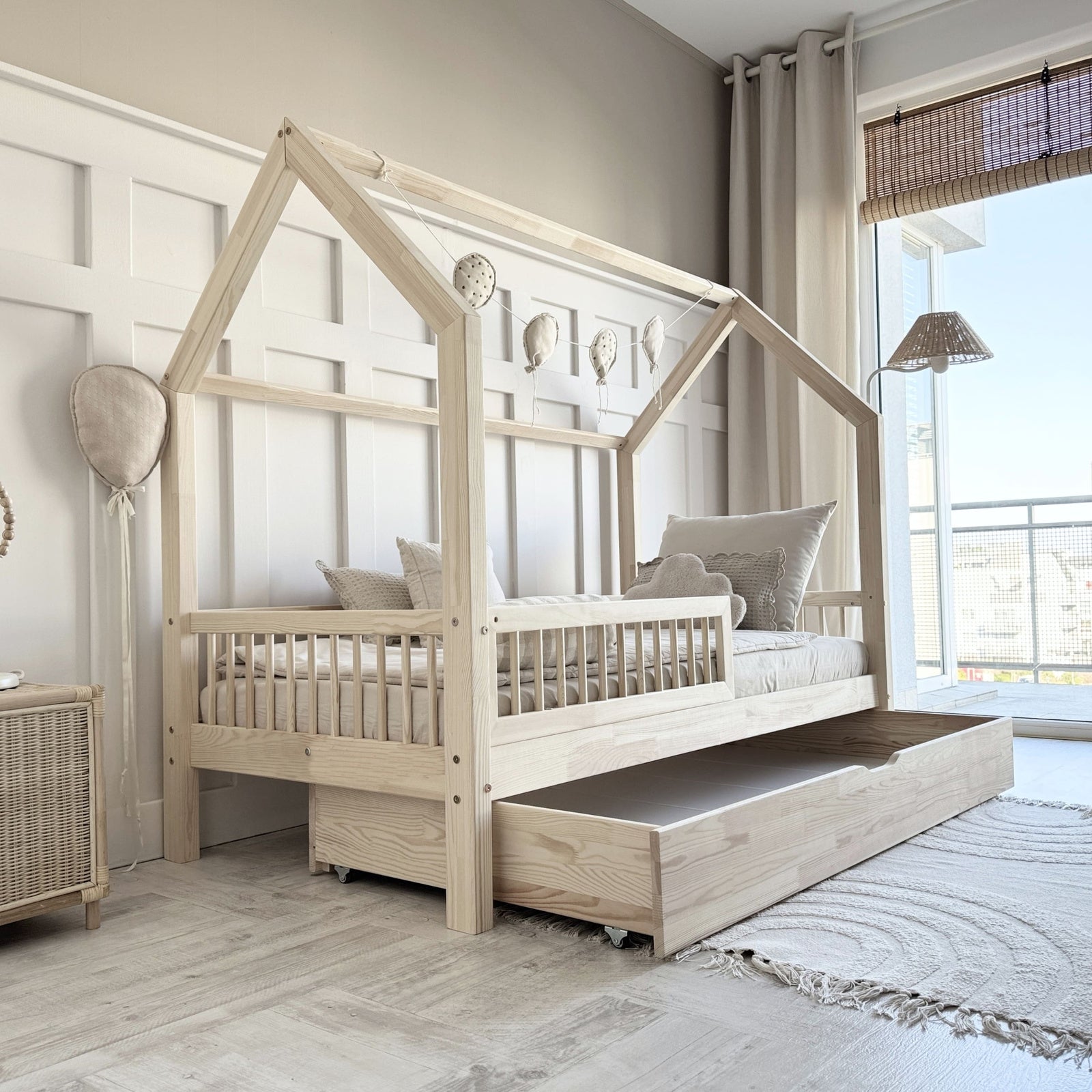 Udover det æstetiske fokus byder PIOLI hussengen på funktionalitet i særklasse. De aftagelige tremmer tilbyder en fleksibilitet, der kan tilpasses det enkelte barns behov og værelse. Når barnet vokser, eller når der er behov for en forandring i værelset, kan du med lethed ændre sengens udseende og funktion.