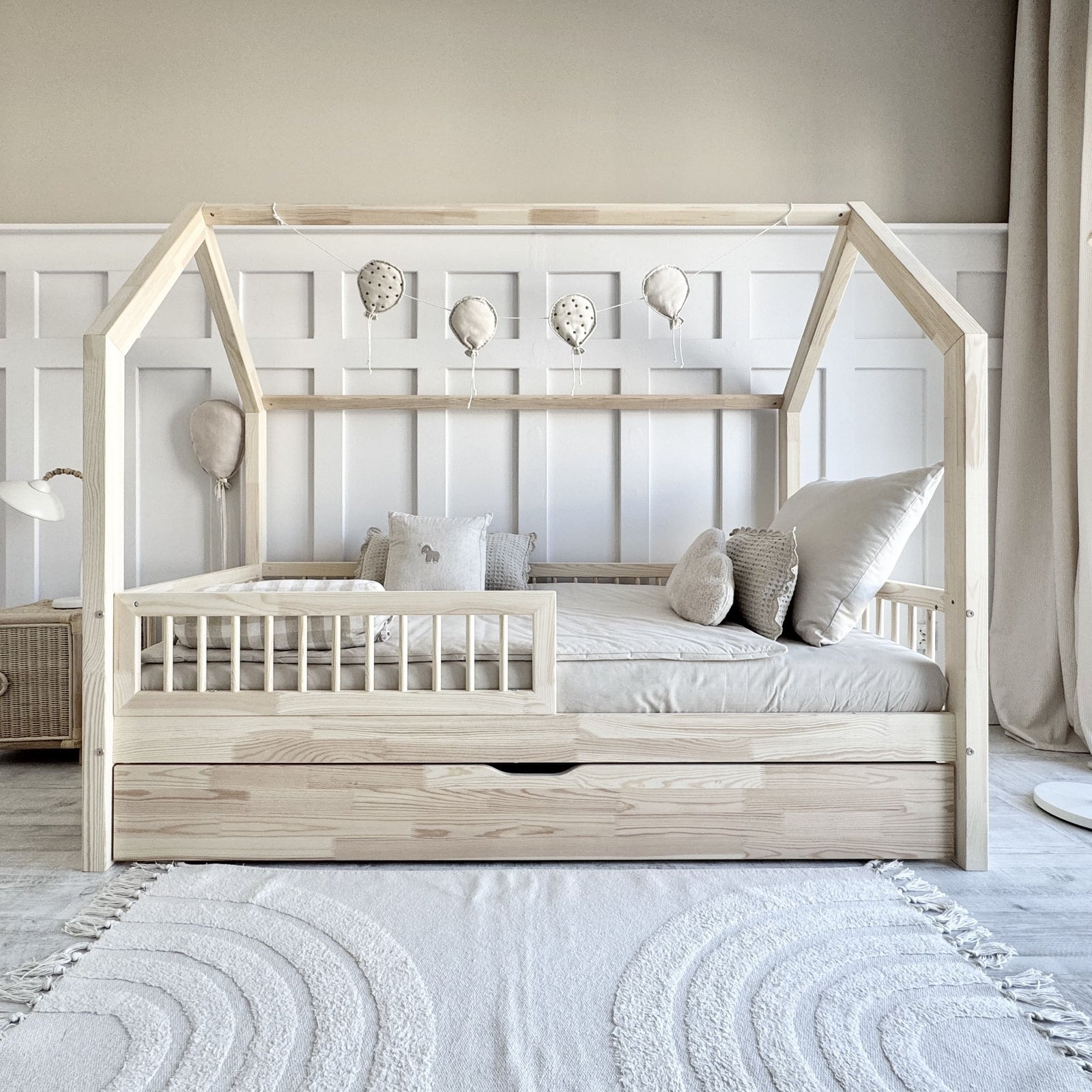 PIOLI hussengen er ikke blot en seng, men et møbelstykke, der indfanger essensen af nordisk elegance med praktiske egenskaber, der komplementerer ethvert børneværelse. Sengen er skabt med børns komfort og sikkerhed som højeste prioritet.