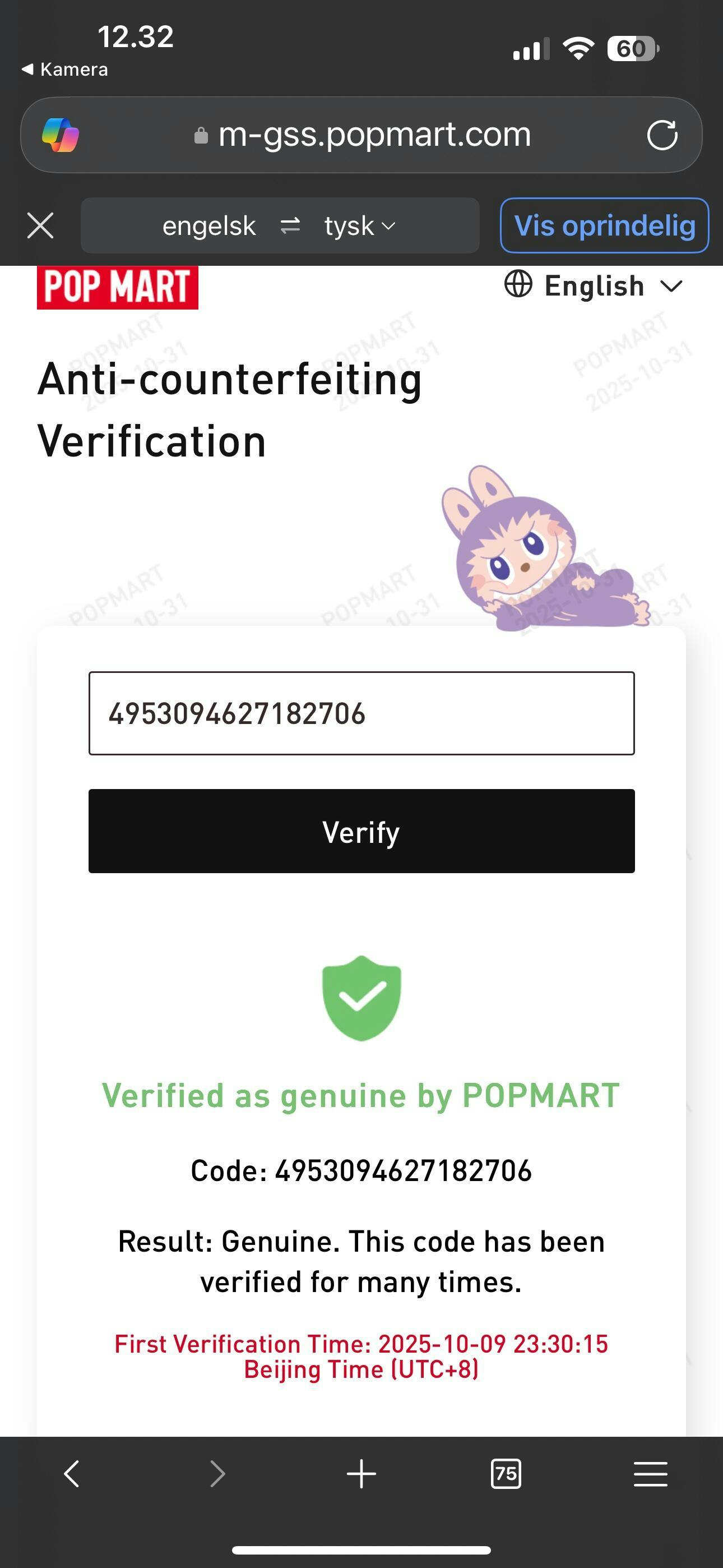 For at sikre ægthed kan du handle fra troværdige forhandlere som Hemmingsen Kids, der garanterer 100% ægte produkter. Du kan også tjekke for den officielle Pop Mart-licens, når du køber.