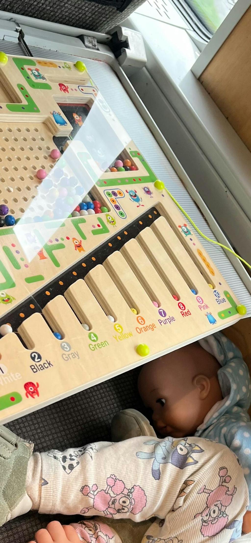 Denne tavle består af en robust træplade med magnetiske elementer, farverige tal og et labyrintmønster samt kort. Små børn kan bruge de magnetiske tal til at navigere gennem labyrinten og placere dem på det rigtige sted på tavlen. Desuden kan de større børn bruge den som et læringslegetøj, og lære at tælle, og efterligne mønstre. Dette fremmer ikke kun deres sorterings- og tællefærdigheder, men også deres koncentration og problemløsningsevner.