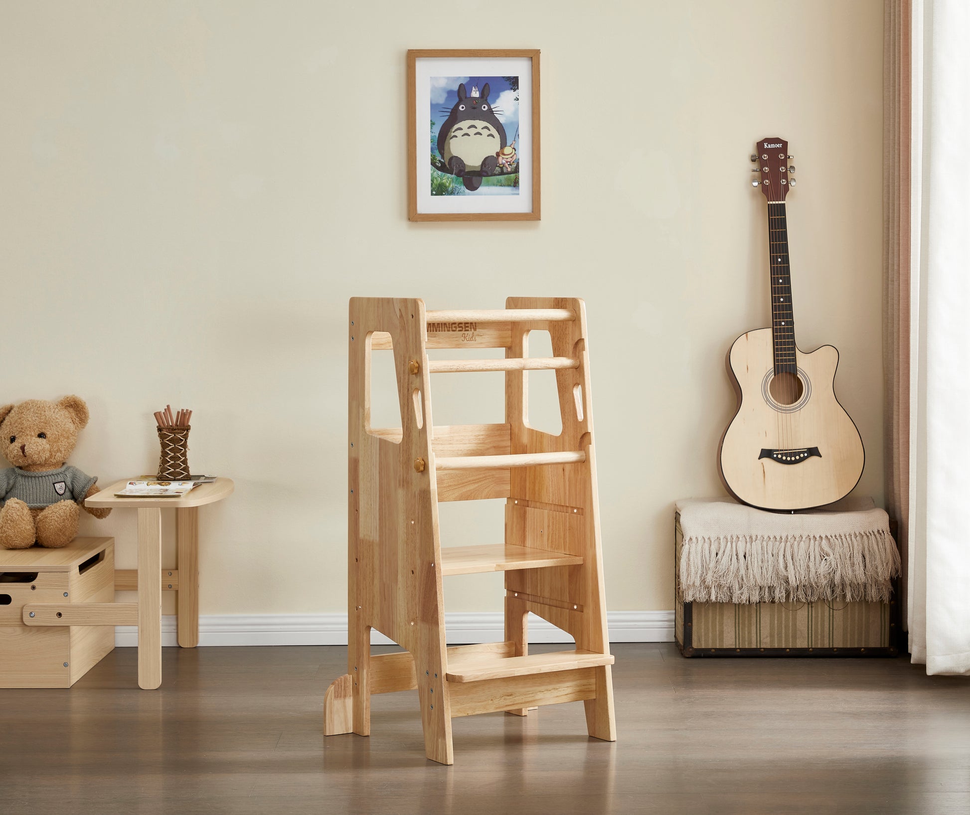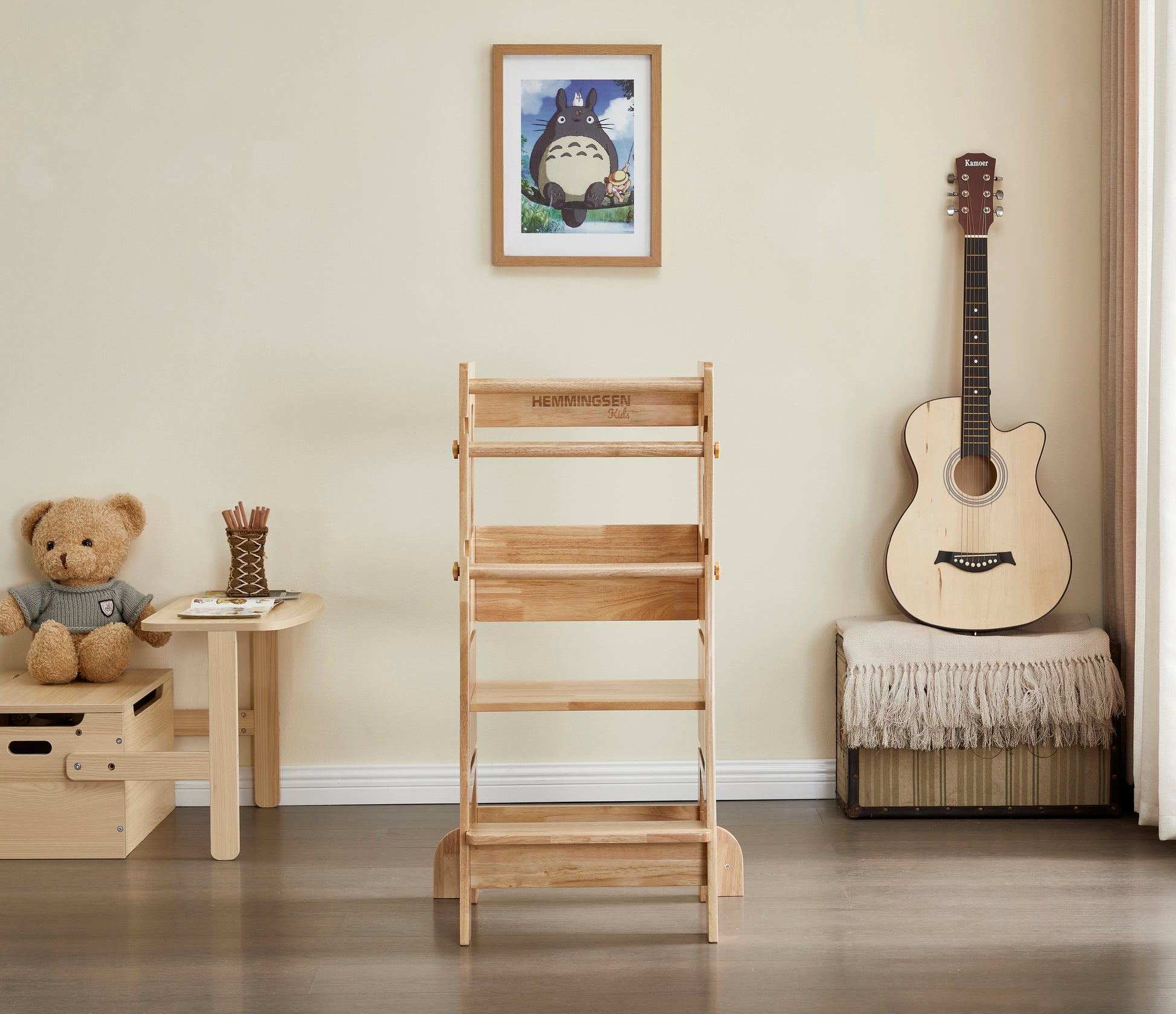 Jeg (Nina) har designet læringtårnet Maya som var det første af Hemmingsen Kids produkter. Jeg savnede et lærtingstårn som kunne mere end bare et læringstårn. Derfor er Maya multifunktionelt med hele 3 forskellige funktioner.