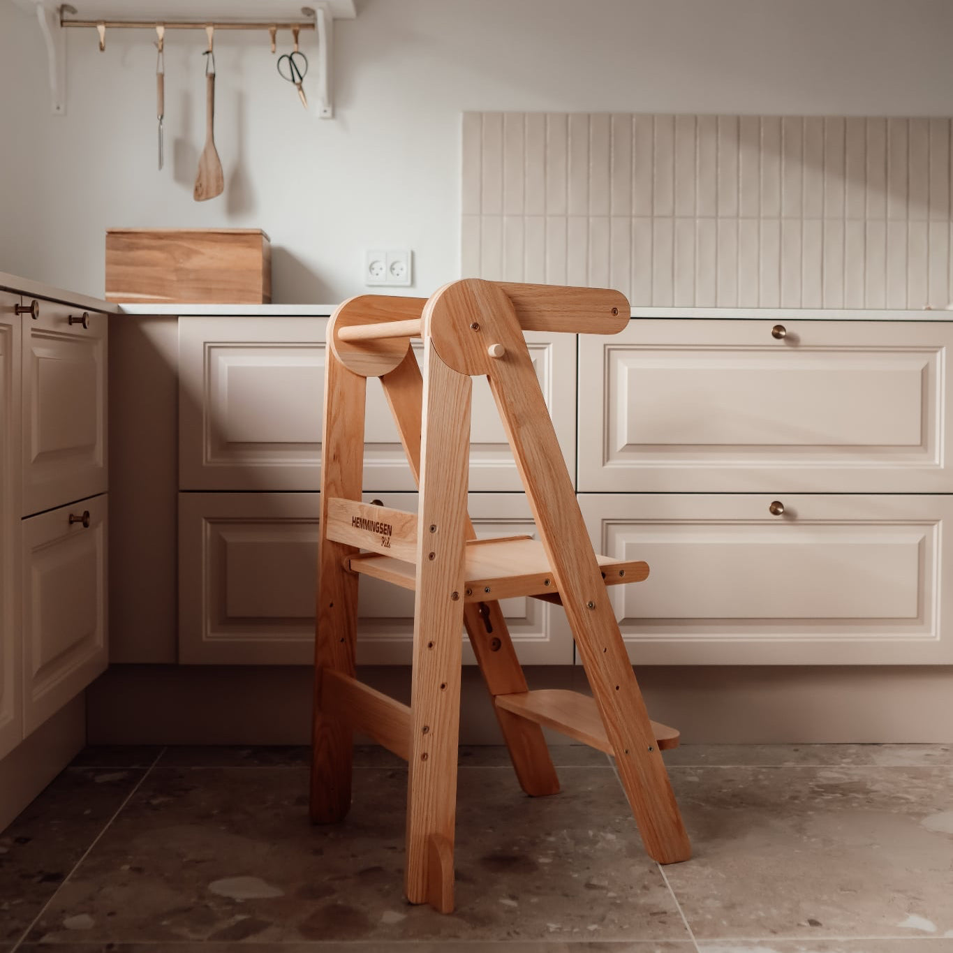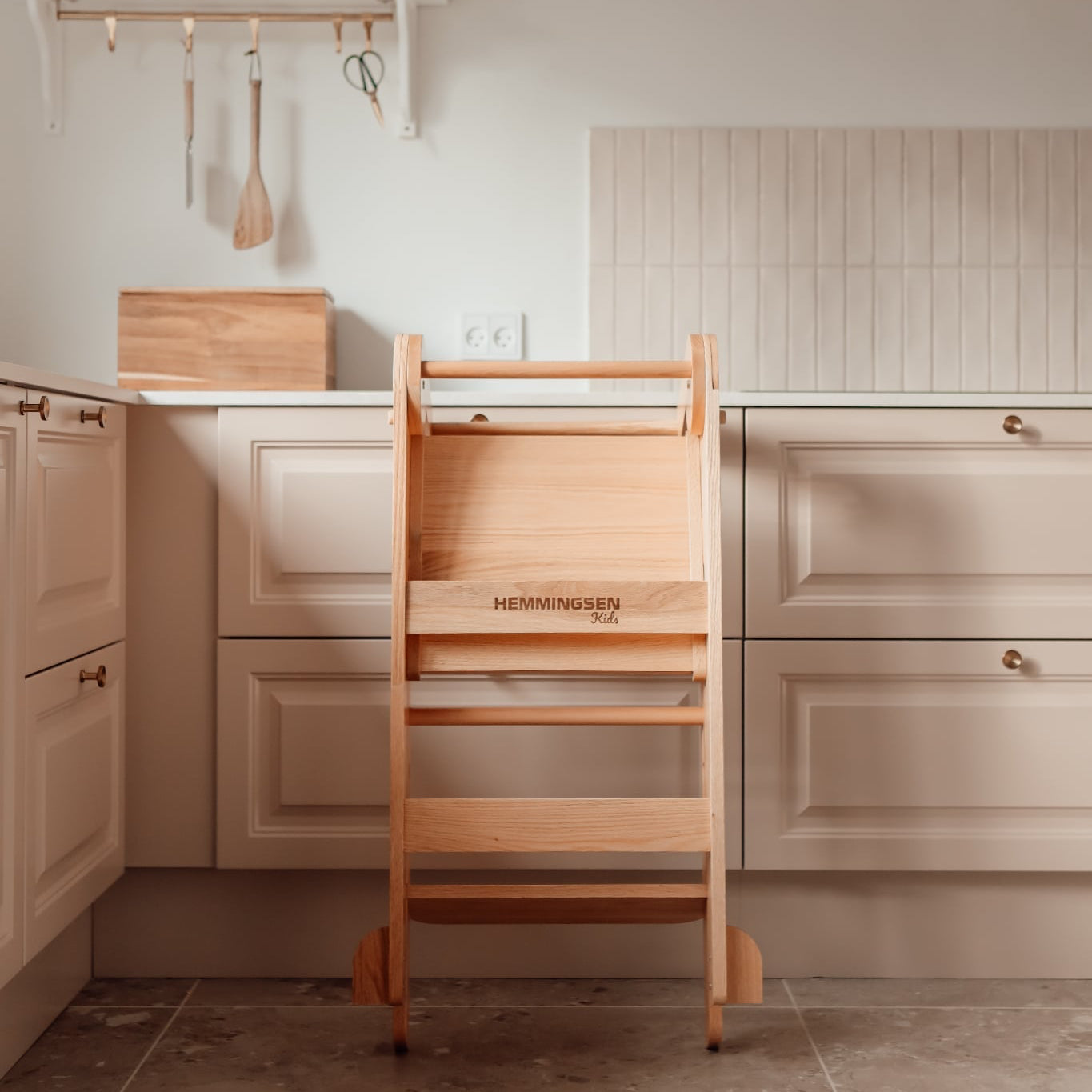 "Vores læringstårn - sammenklappelig, er designet til at gøre hverdagens aktiviteter til en unik læringsoplevelse. Det fremmer både dit barns selvstændighed og sikkerhed." - Hemmingsen Kids