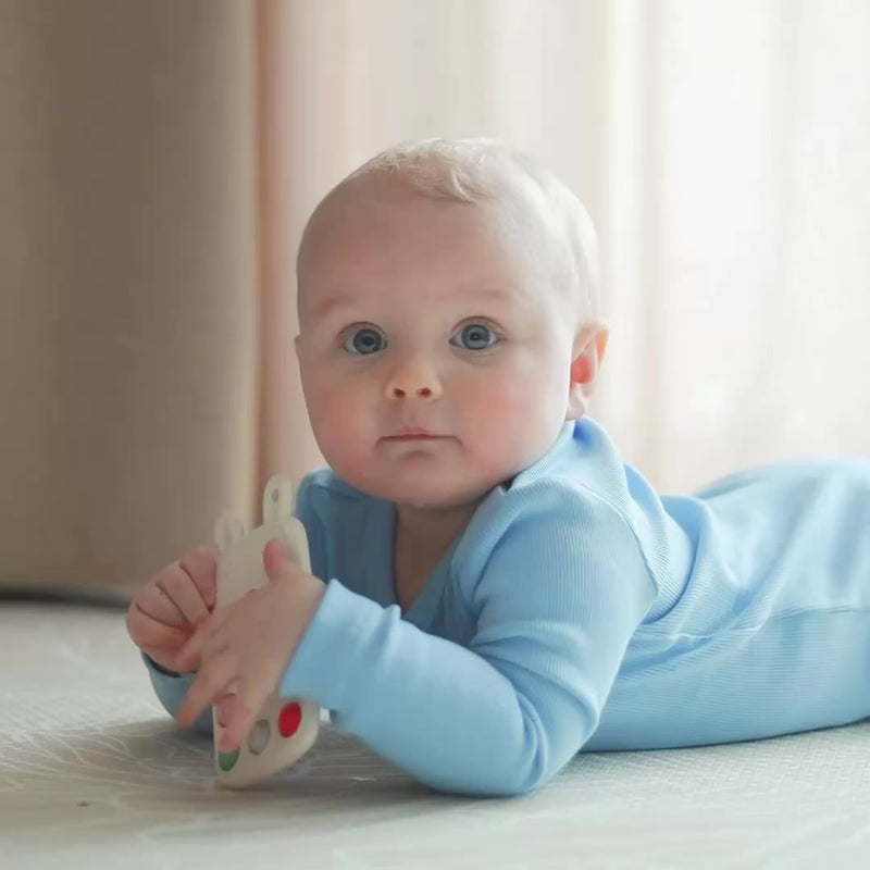 Telefonens farverige pop-it-knapper indbyder til gentagen tryk-leg, som hjælper barnet med at styrke koncentration, hånd-øje koordination og tidlig talgenkendelse. Den bløde, fødevaregodkendte silikone gør telefonen ideel som bidering, når tandfrembruddet giver kløe og ubehag.